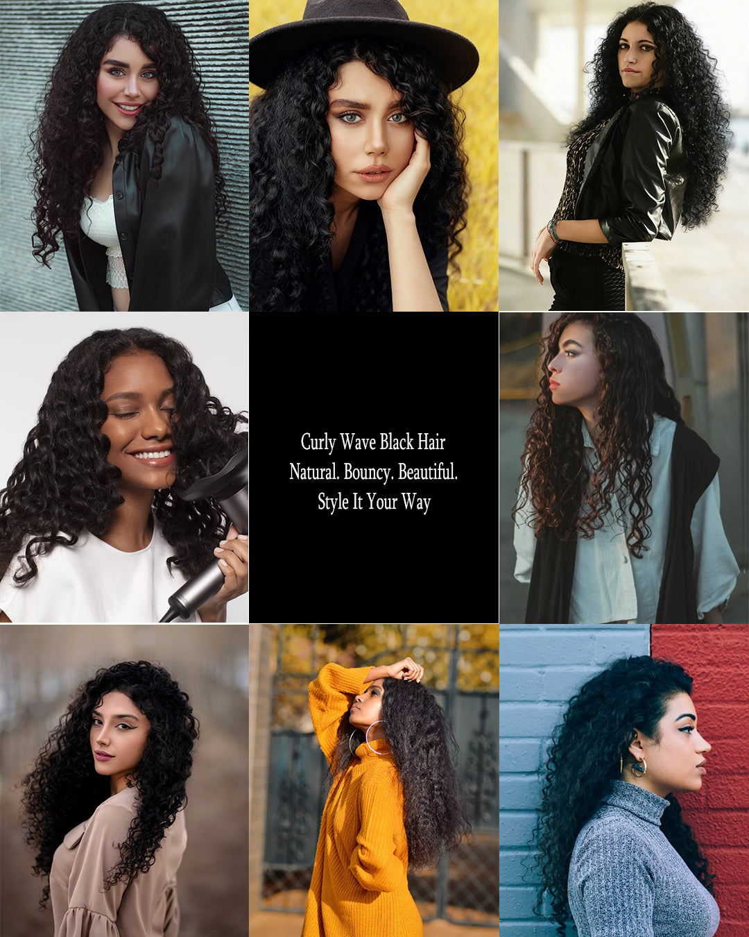 Gefily 16’’–26’’ Braiding Hair Natural Black Deep Curly Wave Hair –Smooth Flow, True to Length, Natural Black Beauty
