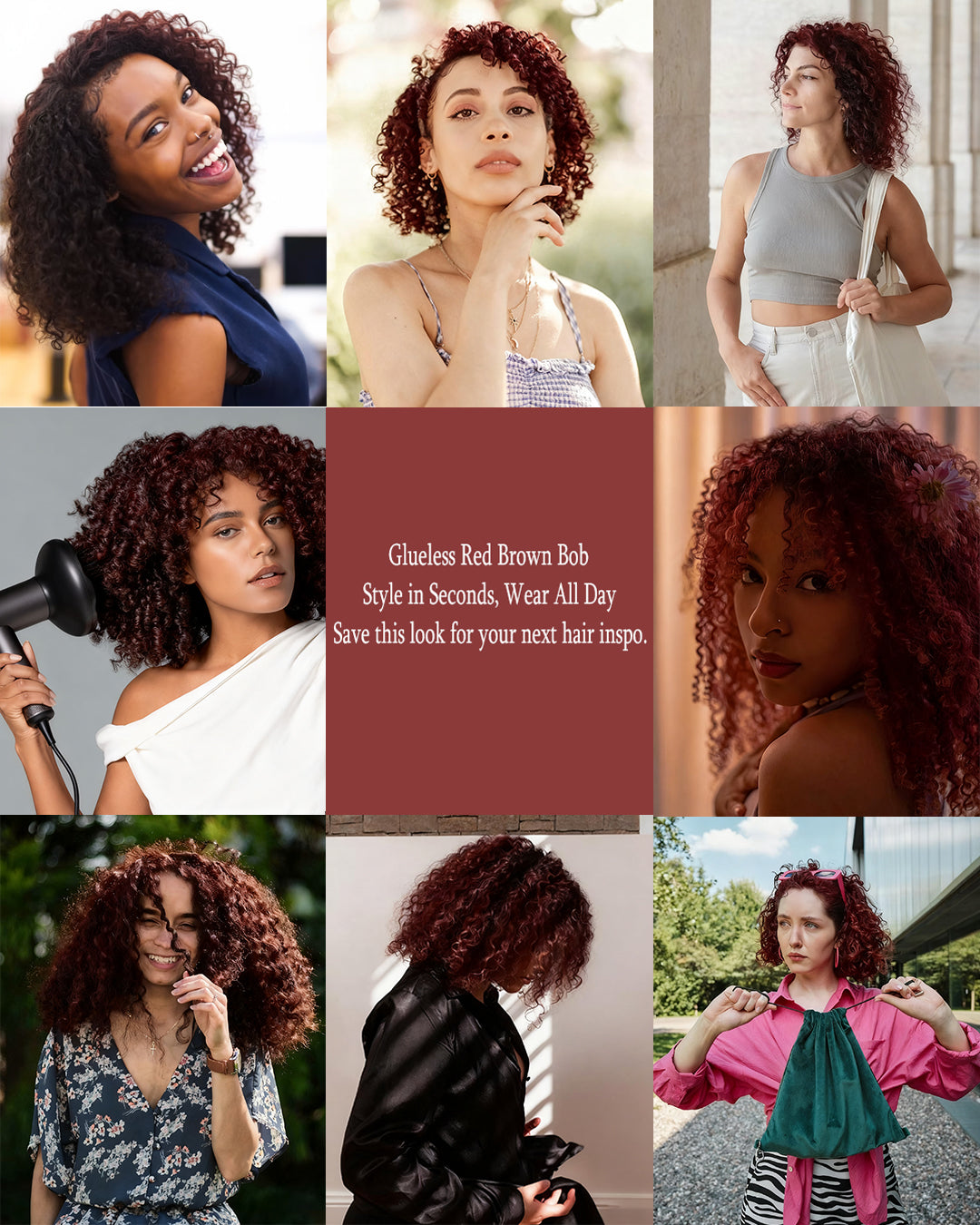 ⚡️|BigSale|Gefily 12” 5x5 Red Brown Curly Bob Guleless Wig