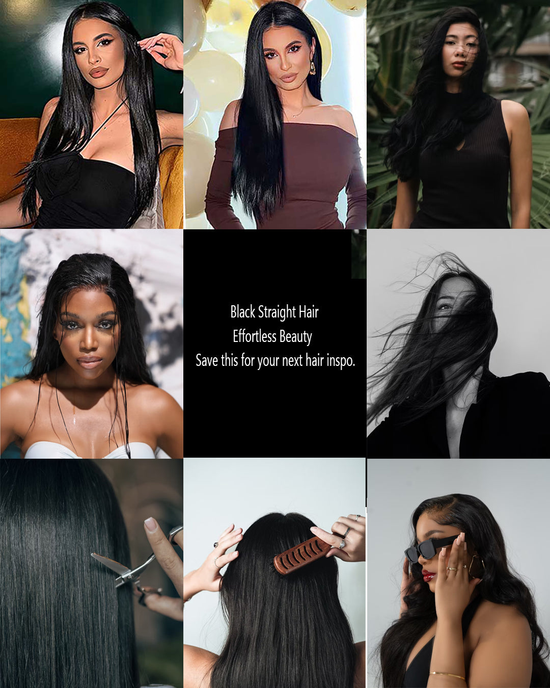 Gefily 20”-40” 13x6 Lace Natural Black Long Straight Wig – Sleek Long Style, Elegant and Timeless