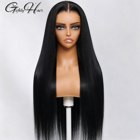 Gefily 18'' -42'' 7x6 Natural Black Straight Hair Glueless Lace Front Wig – Travel-Ready & Low Maintenance