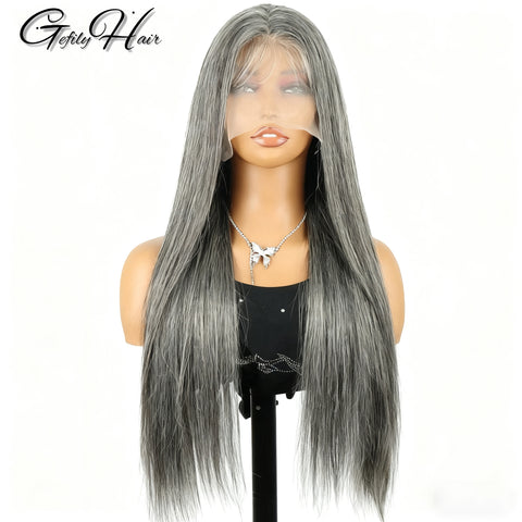 Gefily 20’’–32’’ 13x4 Salt & Pepper Straight Lace Front Wig – Ultra Invisible Lace, 100% Human Hair, Natural Grey Blend for Sophisticated Beauty