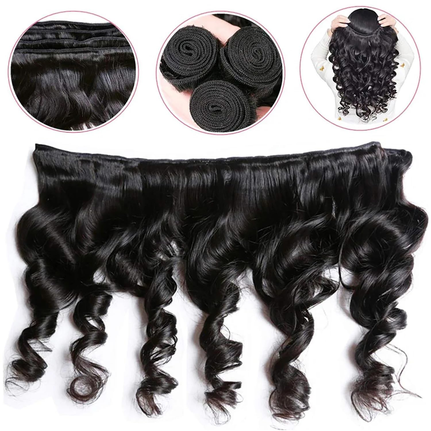 Gefily 18’’–34’’ Bundles Natural Black Loose Wave Hair –100% Virgin Brazilian Human Hair, Premium Quality, Full Density, Minimal Shedding & Long Lifespan