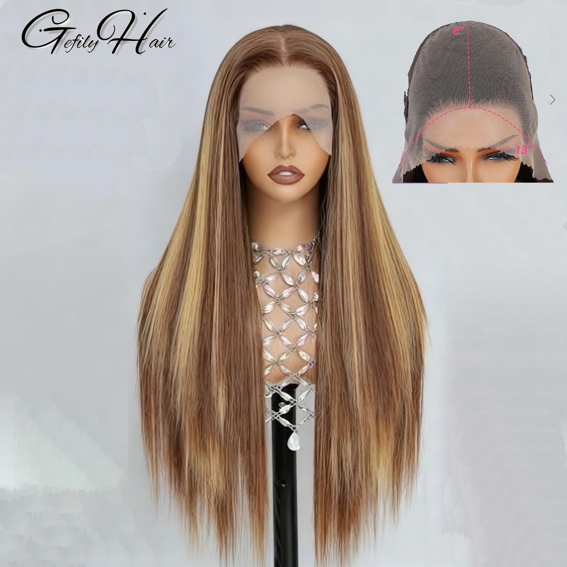 Gefily 20β-40β 360/13x6 Lace 4/27 Highlight Brown Long Straight Wig β Sleek Long Style, Elegant and Timeless